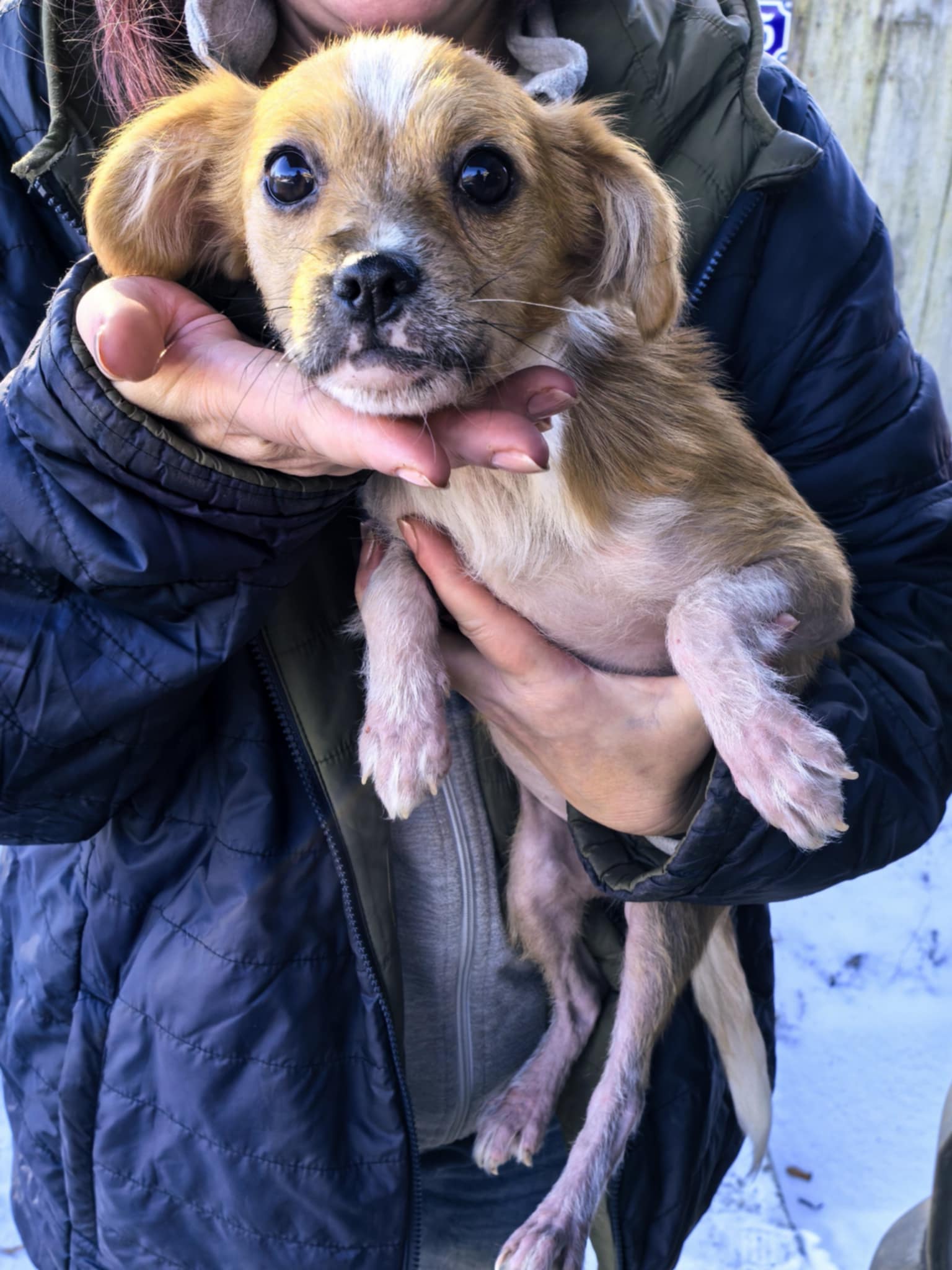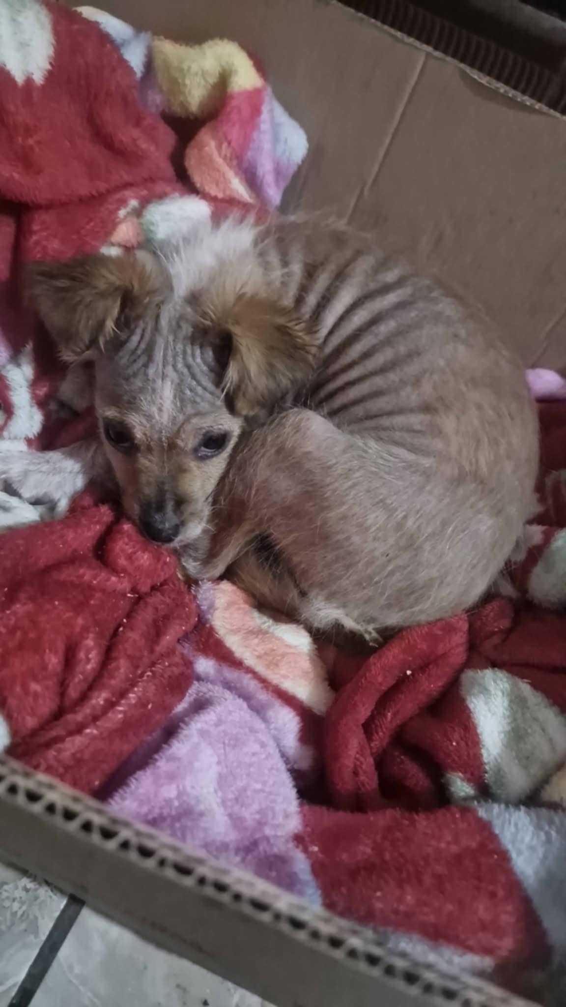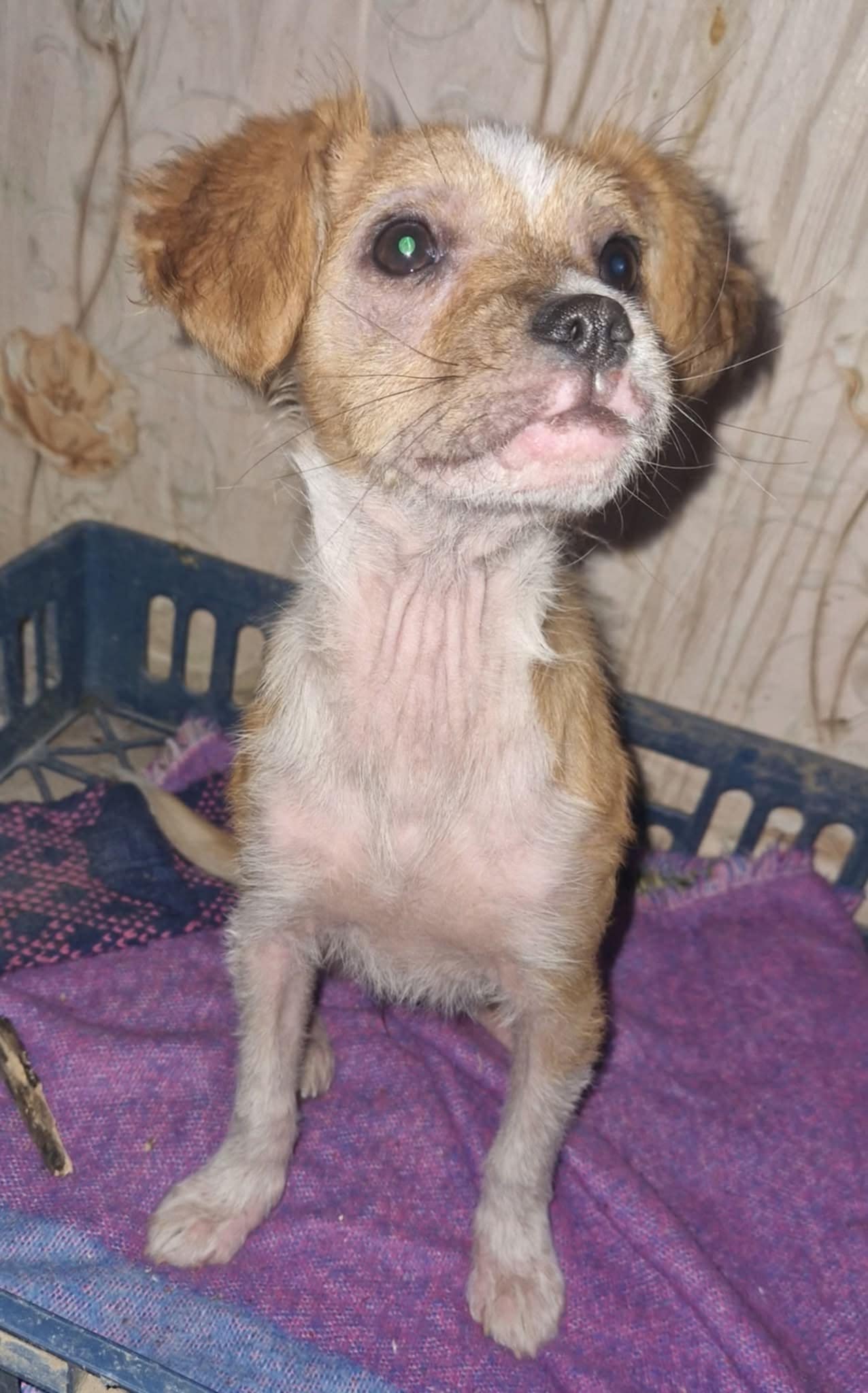 BELLA a été sauvée des rues par une jeune fille alors qu’elle n’avait quasi plus de poils (elle nous rappelle le cas d ‘OLLY, trouvé dans un sale état, quasi sanguinolent, mais qui pète maintenant la forme dans son foyer liégeois!).La petite chienne souffrait d’une dermatite sévère causée par des piqûres de puces.