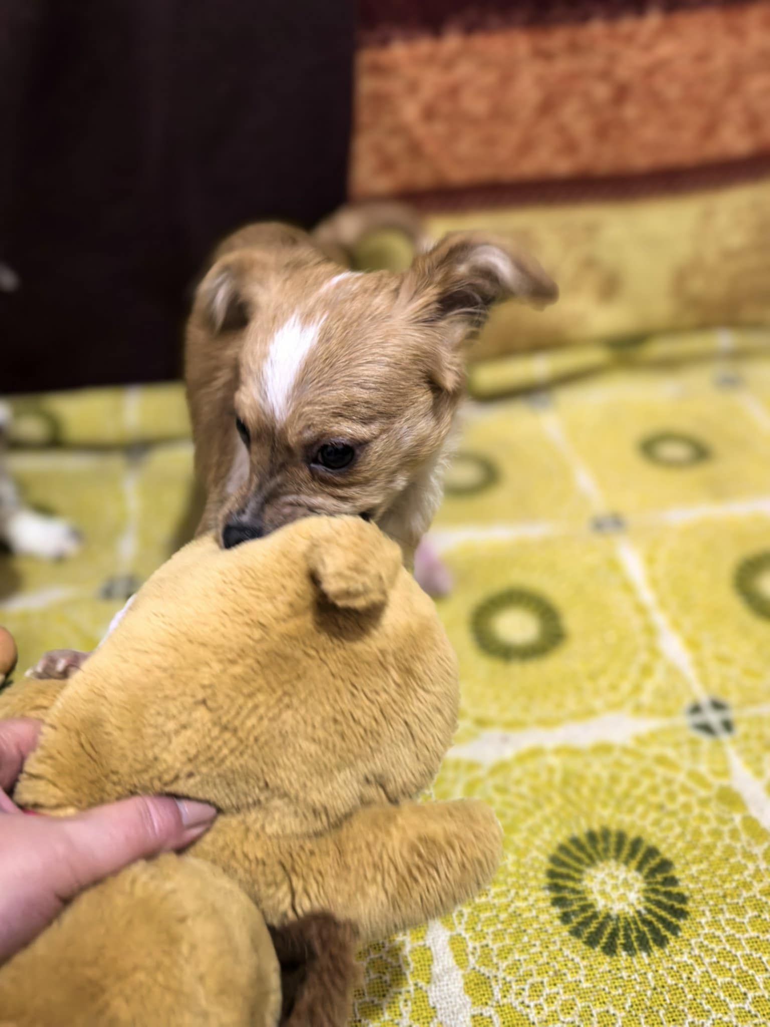 La petite chérie est très sociable, affectueuse et joueuse. Très énergique, elle est le chef parmi les chiots avec lesquels elle est gardée. Gina la surnomme d’ailleurs le « chef des nains ».