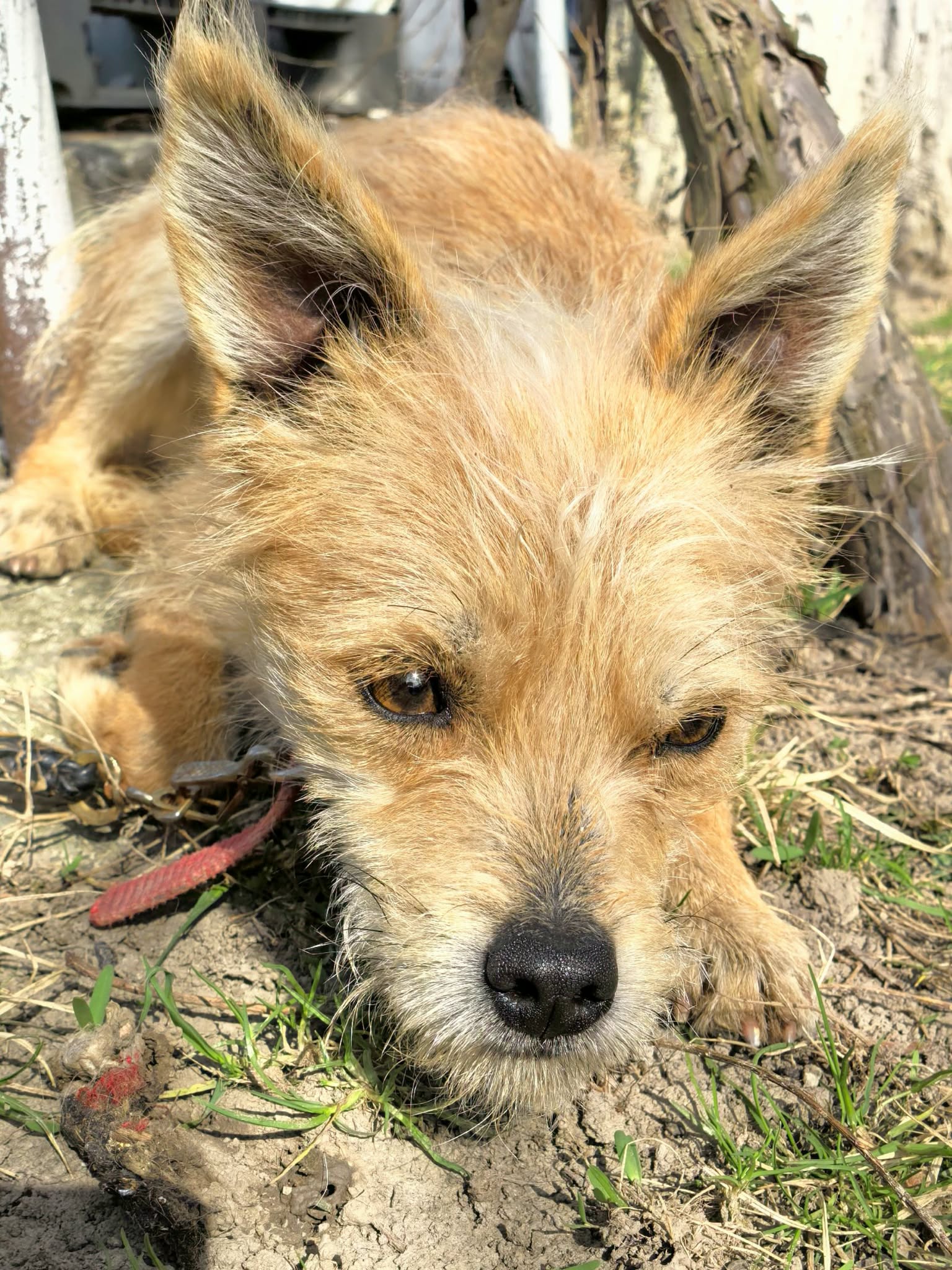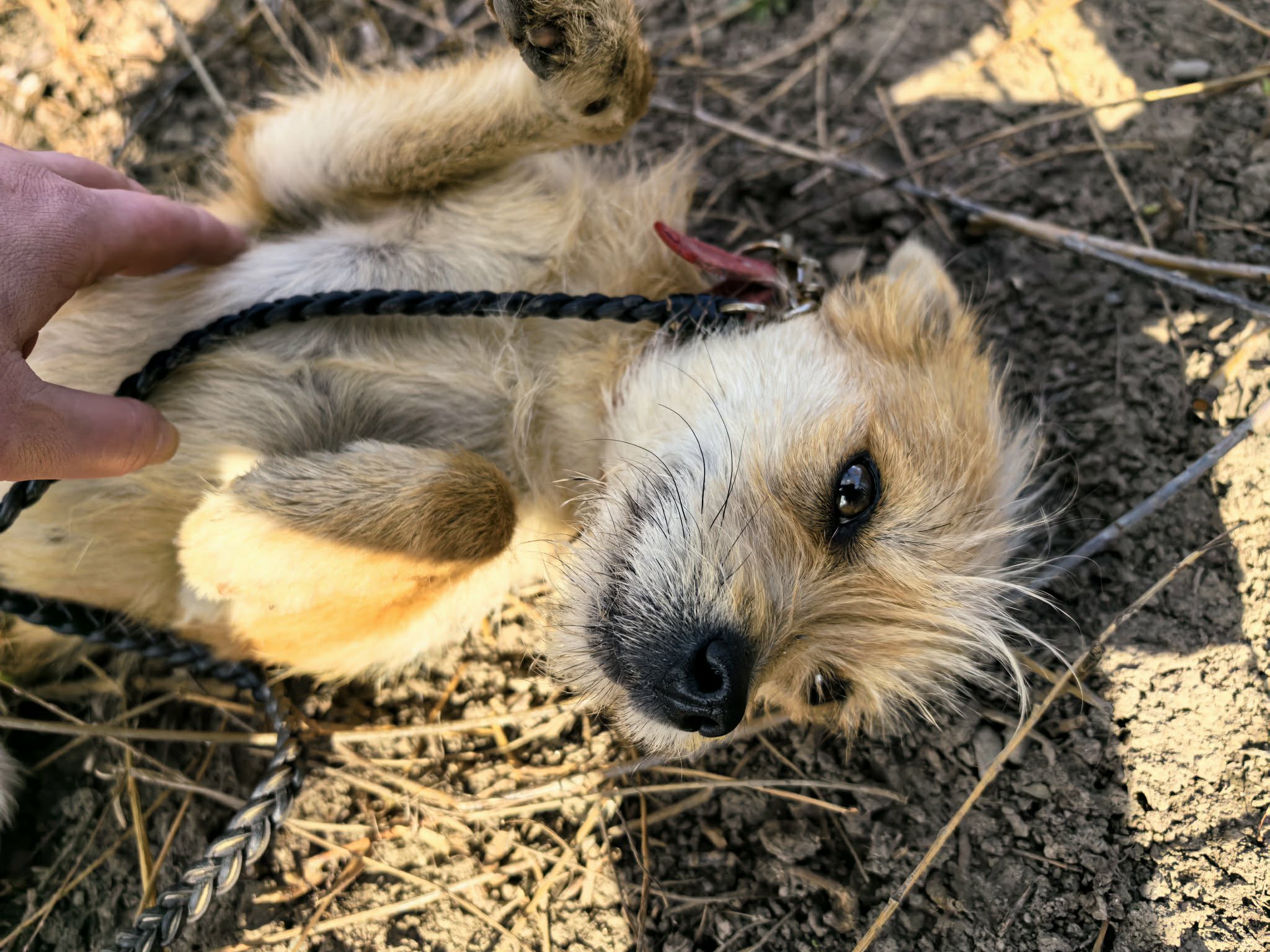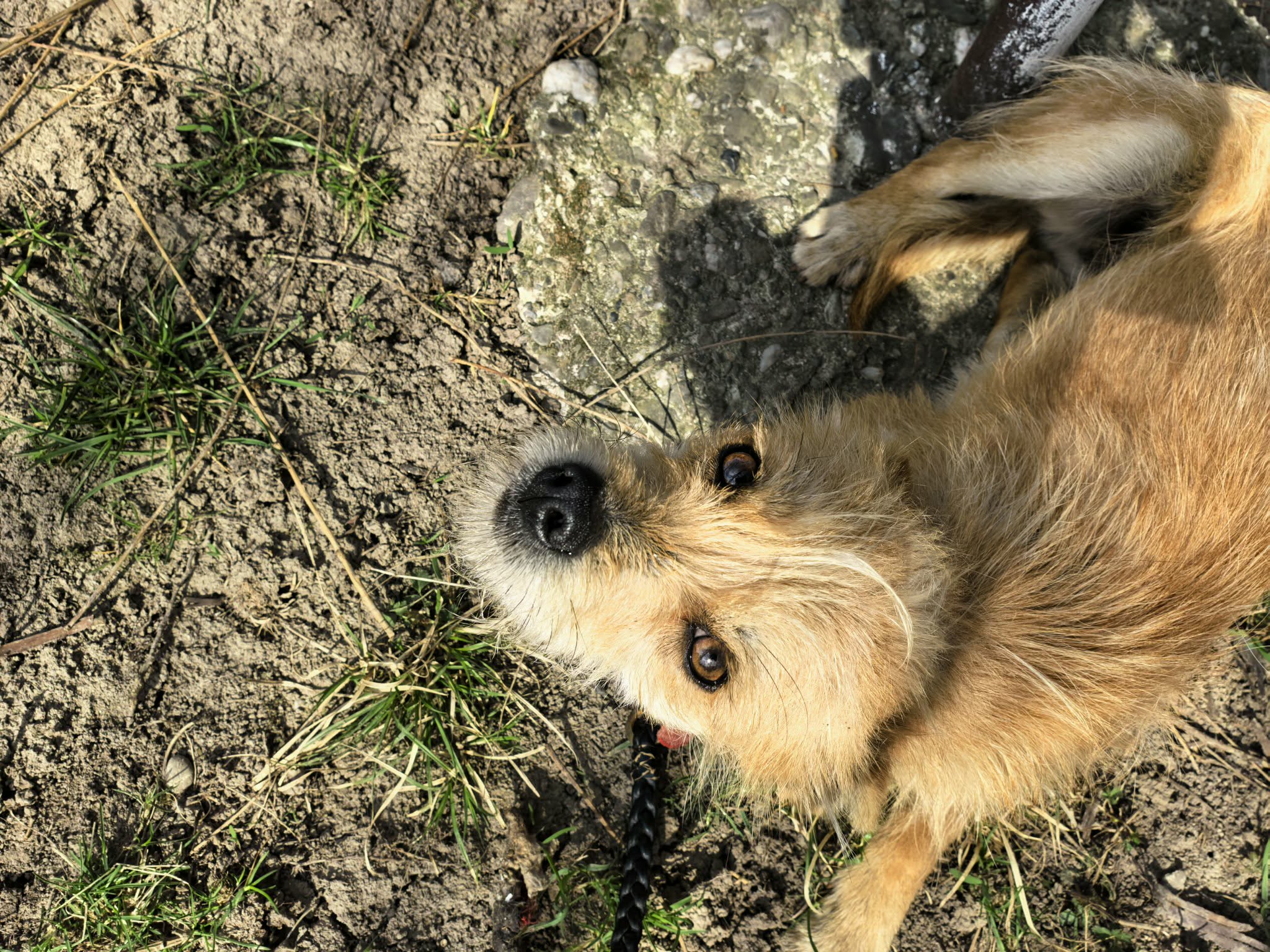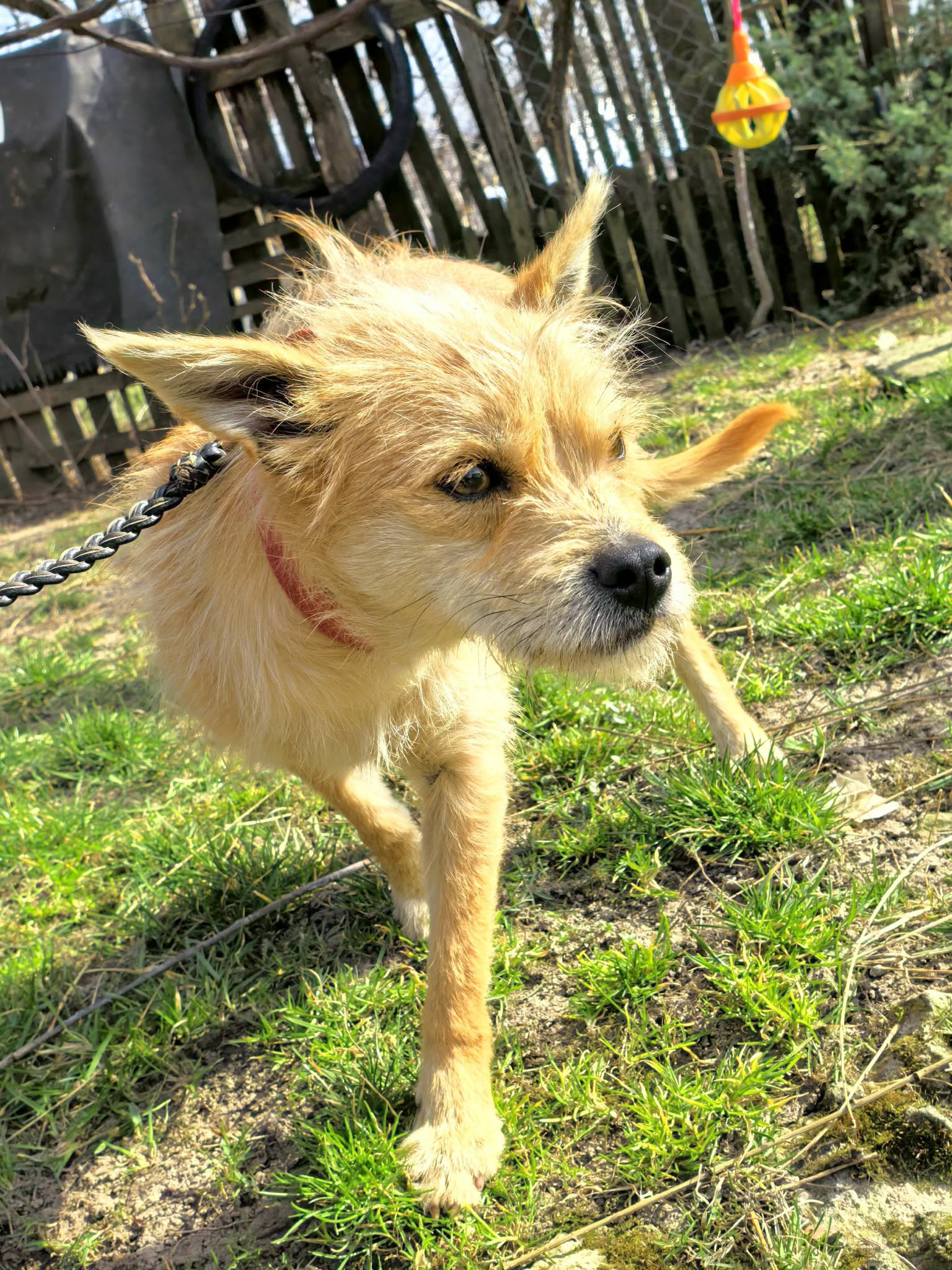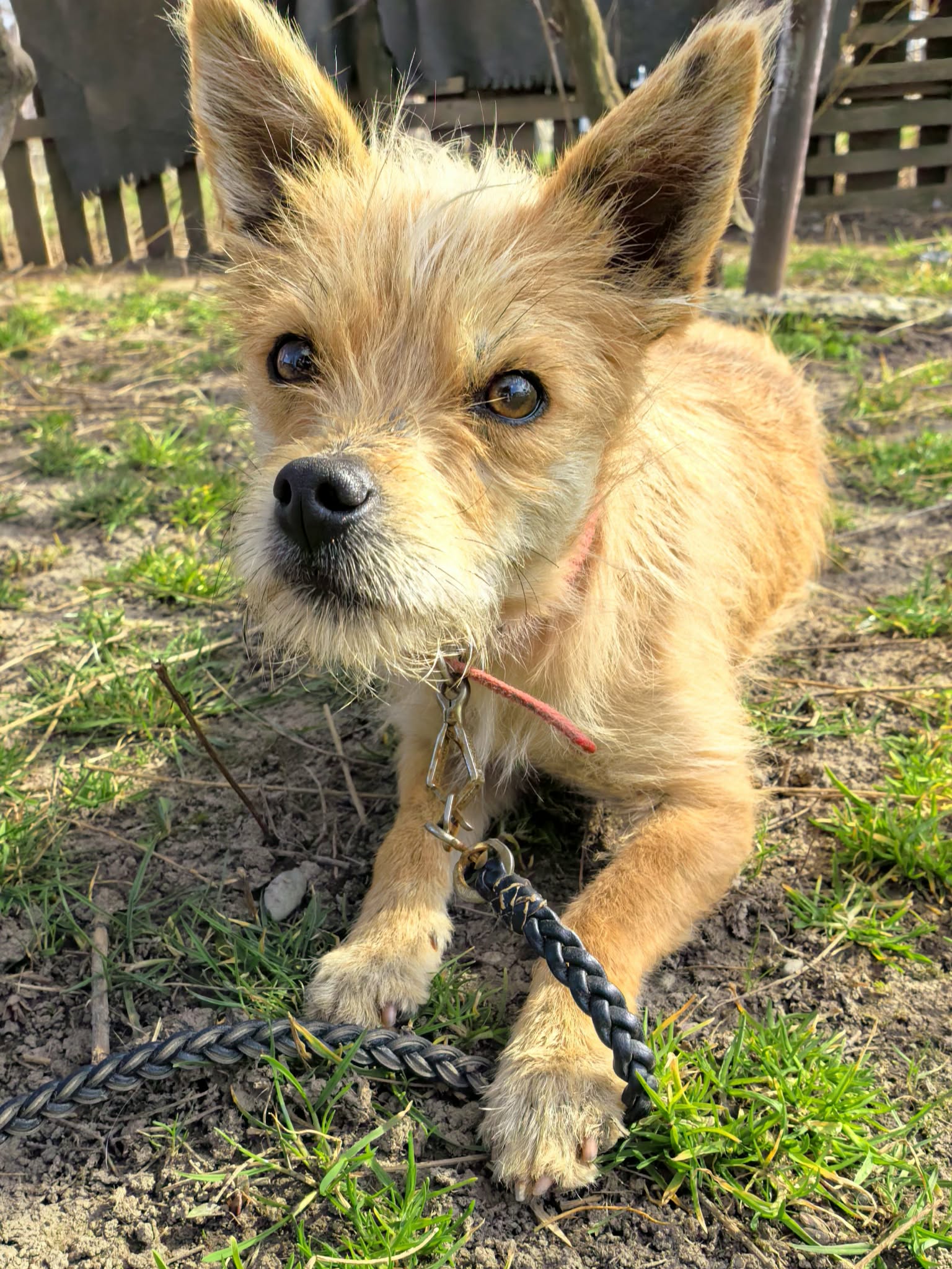 Parmi les chanceux, NALA, une petite demoiselle très amitieuse, qui mesure environ 35 cm au garrot pour 5/6 kg et est estimée née mi-mars 2024.