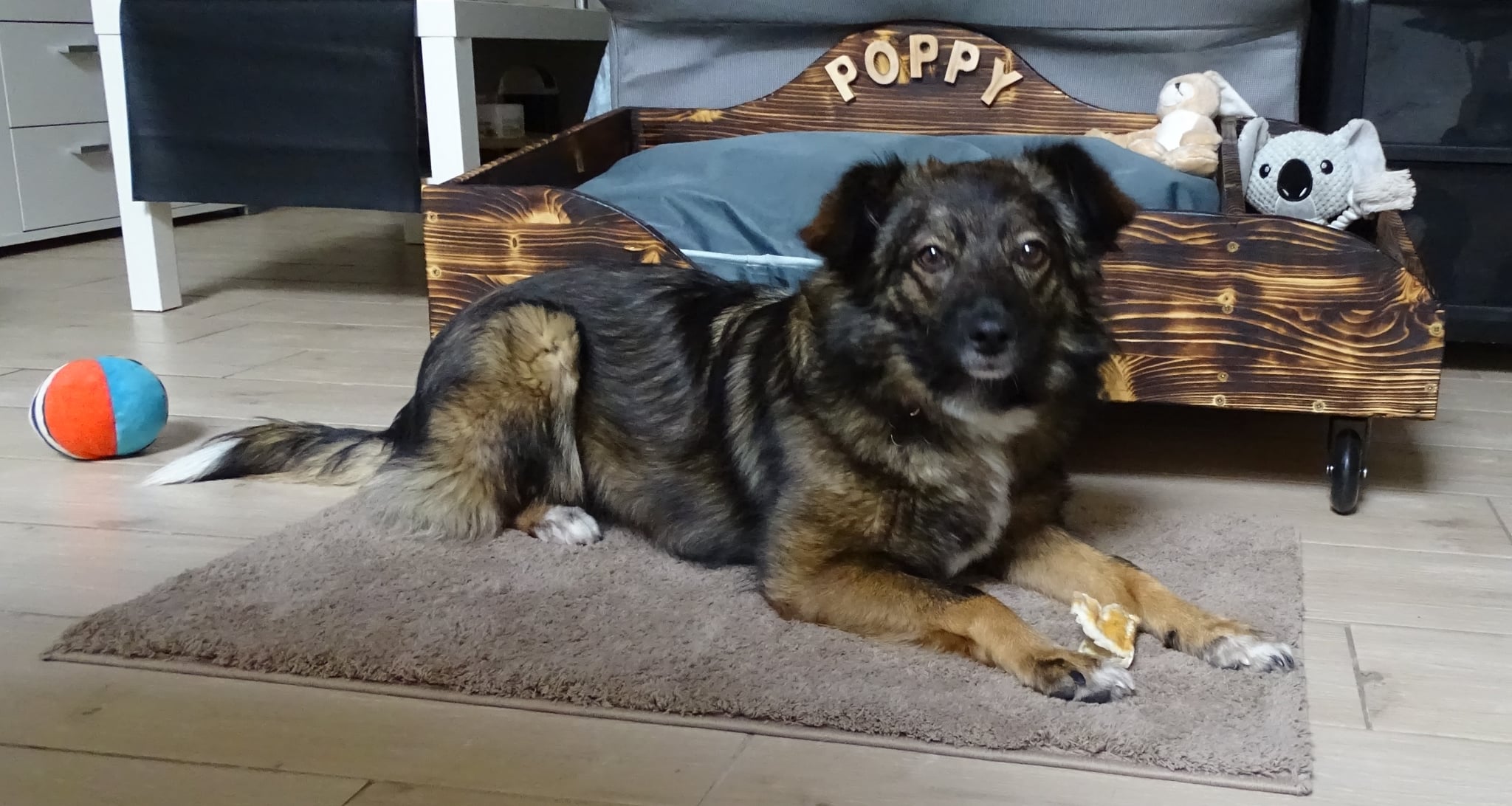 Elle souhaite donc, dans l’intérêt de Poppy, que nous lui trouvions une famille qui lui permettrait  de continuer à profiter d’une belle vie, faite de promenades et de jeux.