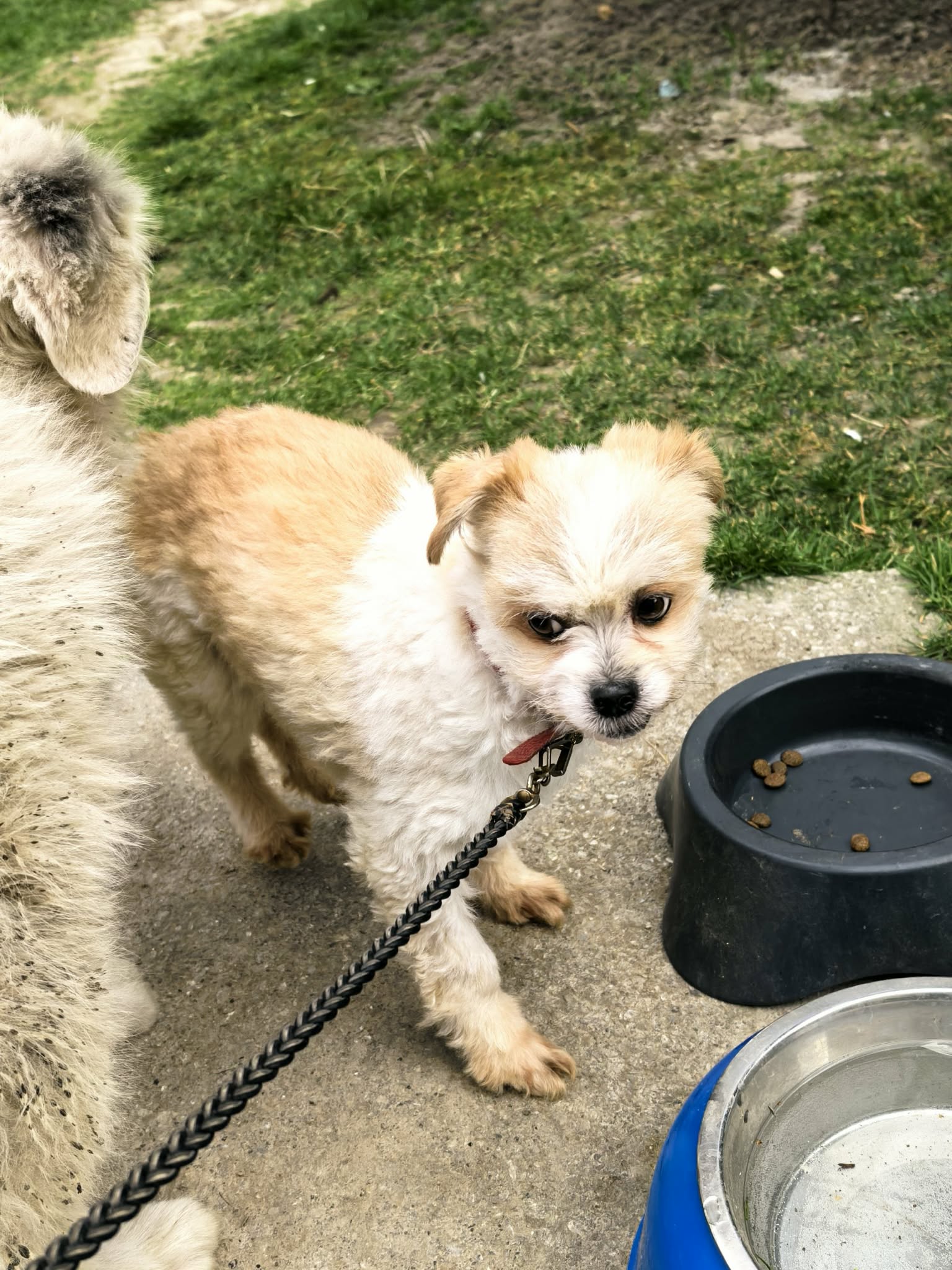 Tiny s’entend bien avec ses congénères ainsi qu’avec les chats. Il marche déjà en laisse. Il adore les caresses et a beaucoup d’amour à donner!